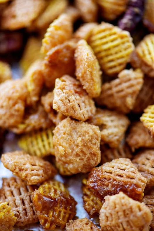The Ultimate Praline Crunch Snack Mix is a sweet and savory treat that combines buttery praline flavors with crunchy cereal, nuts, and pretzels. Here’s a recipe to help you create this delicious snack: