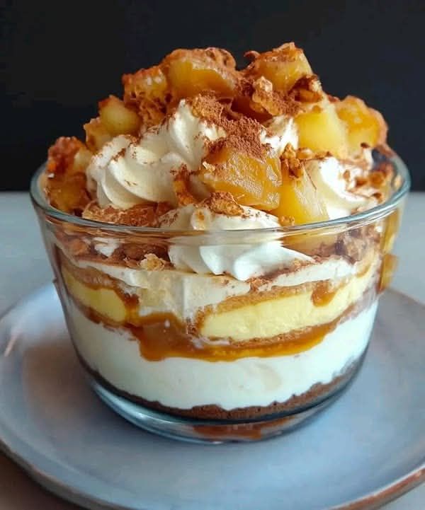 Le tiramisu au caramel beurre salé et pommes poêlées est une version chaleureuse, douce et originale du célèbre dessert italien. Exit le café et le cacao en duo classique : ici, ce sont les pommes fondantes, le caramel onctueux et les biscuits croquants qui viennent sublimer la traditionnelle crème au mascarpone. Ce tiramisu twisté est un pur moment de gourmandise, parfait pour surprendre vos convives en toute saison, mais surtout à l’automne ou en hiver.