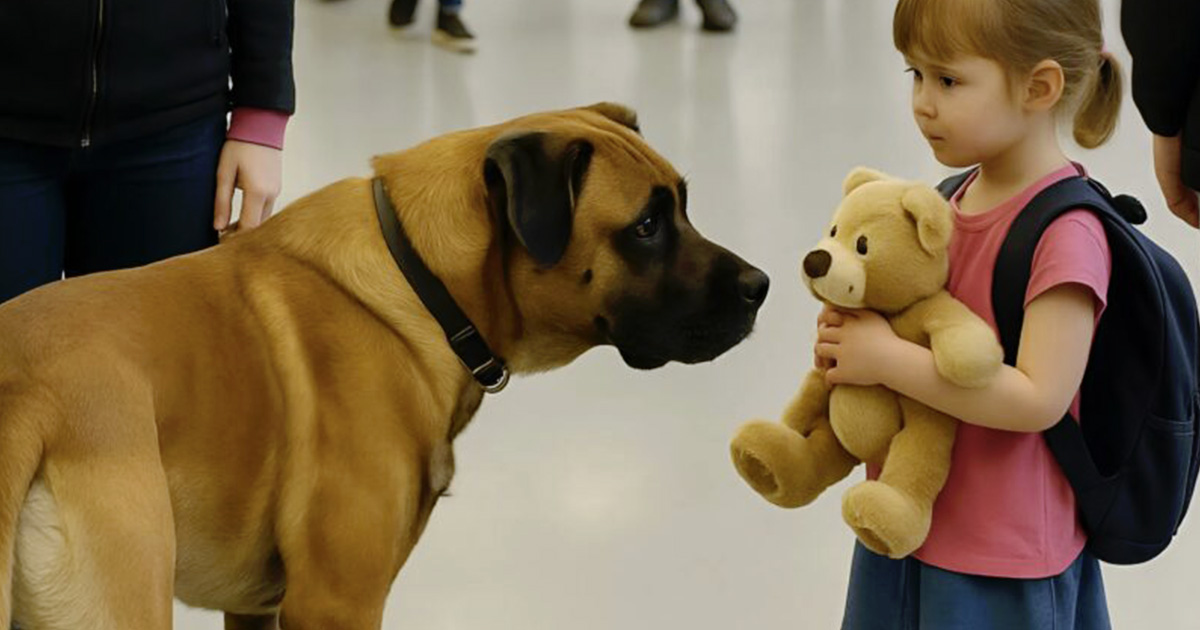 Dans un aéroport français comme tant d’autres, où les voyageurs pressés se croisent entre les comptoirs d’enregistrement, un événement inattendu a figé l’agitation. Un chien d’assistance, Léo, jusque-là calme et concentré, a soudain bondi en aboyant vers une fillette tenant un ours en peluche. À première vue, rien d’inhabituel. Mais derrière ce geste se cachait une vérité troublante… que seul le flair de Léo allait révéler.