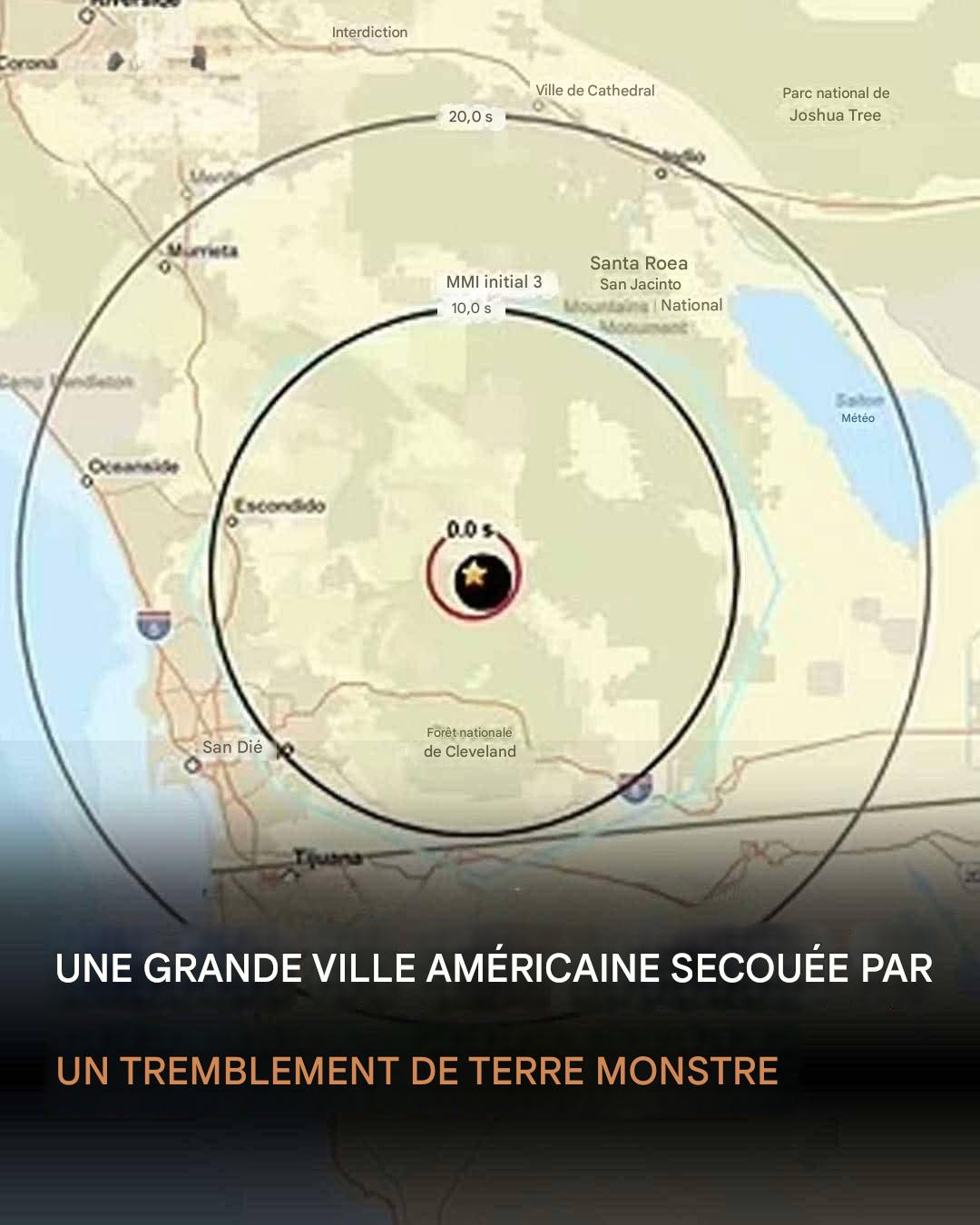 Un important séisme de magnitude 5,2 a frappé près de San Diego lundi soir, provoquant des secousses dans tout le sud de la Californie et secouant les habitants jusqu’à Los Angeles, à 190 kilomètres de là. Le séisme, dont l’épicentre se trouvait à quelques kilomètres de la ville de Julian, dans les montagnes, a déclenché des alertes d’urgence rapides, mais n’a fait état d’aucun dégât ni blessé majeur dans l’immédiat.