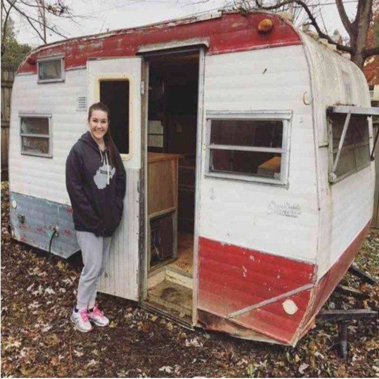 Ellie a passé l’été à transformer une vieille camionnette cabossée en un adorable camping-car. Elle a réalisé la majeure partie du travail elle-même, avec l’aide de son père et de son grand-père.