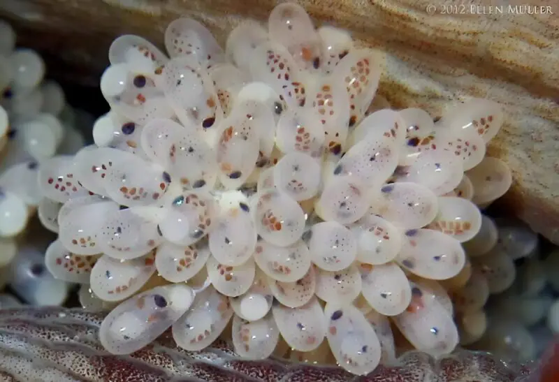 Clara, la pieuvre, avait choisi cette grotte comme dernier refuge. Là, elle avait pondu des centaines d’œufs, collés avec soin à la roche. Elle les surveillait sans relâche, protégeant chaque coquille avec une attention constante. Sans manger, sans bouger davantage que nécessaire, elle consacrait tout ce qu’il lui restait à la survie de ses petits.