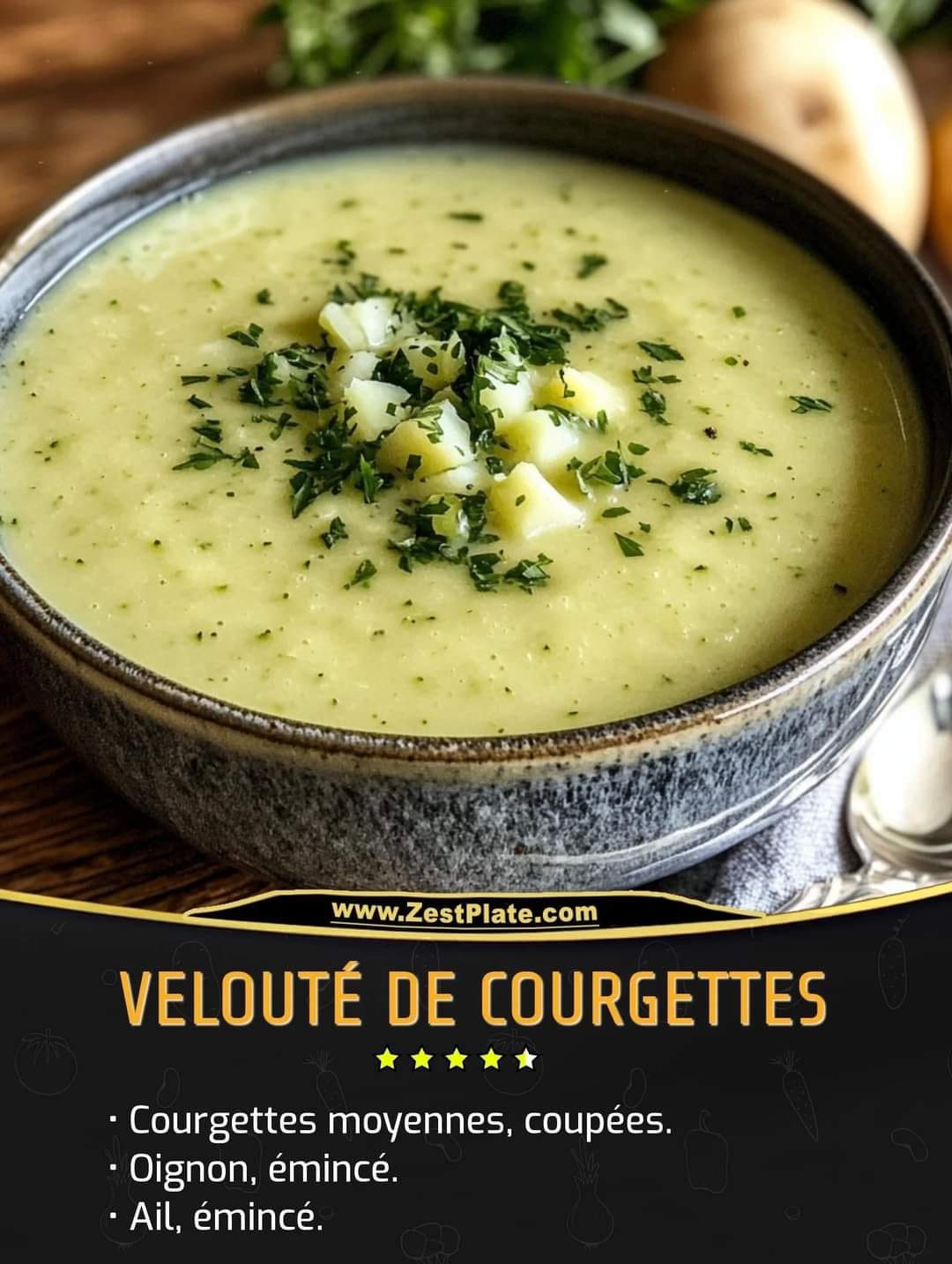 Un délicieux velouté crémeux réalisé à partir de courgettes, parfait pour les amateurs de saveurs végétales et de repas réconfortants.