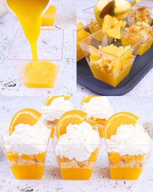 Les verres orange sont des desserts servis dans des verrines, à base de jus ou de segments d’orange, souvent accompagnés d’un élément crémeux (comme du yaourt, du fromage blanc ou une mousse), et parfois agrémentés de biscuits émiettés, de miel ou d’épices comme la cannelle.