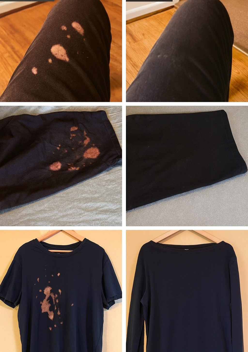 - Teindre le vêtement dans une couleur unie pour masquer la tache.
